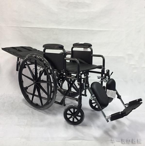 產品描述:鐵制全躺式輪椅可拆手升降骨科腿附防傾裝置靠背0°~170°可躺座寬 41/46/51 cm